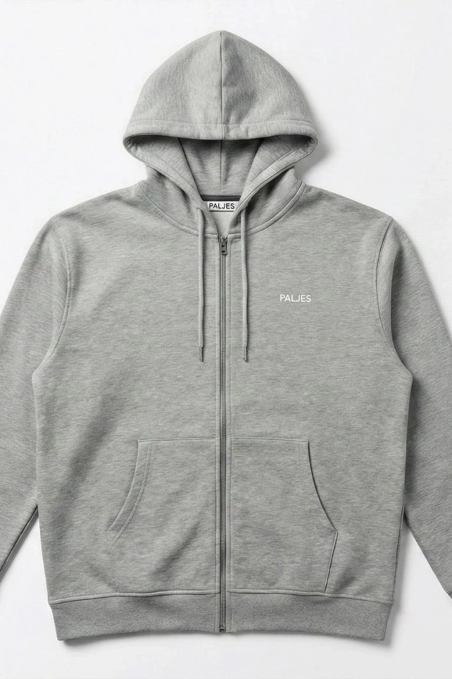 PALJES PREMİUM PAMUK GRİ FERMUARLI HOODİE
